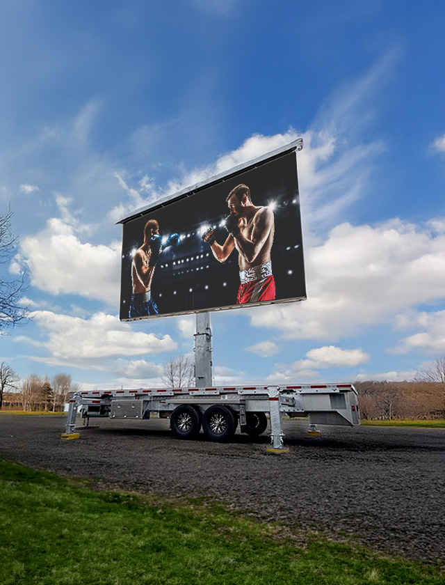 Custom video wall screen trailer with additional staging